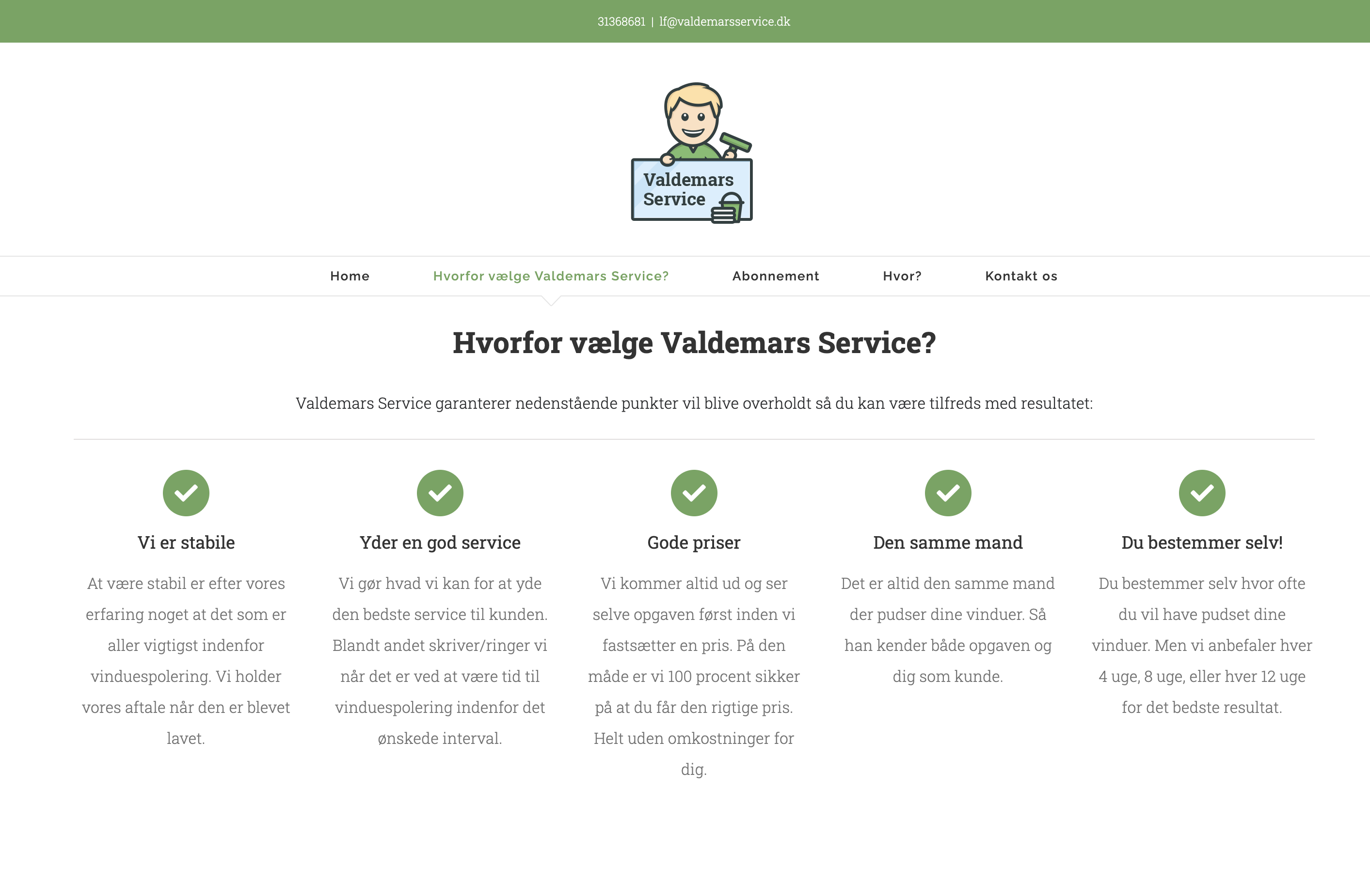 Valdemars Service er et Københavsk vinduespudser firma, med base på Nørrebro. Målet her var at skabe stærk synlighed i en konkurrencepræget branche i en storby.